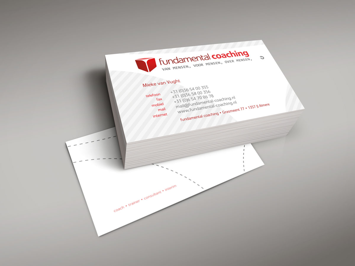 Fundamental Coaching tracht leidinggevenden bekwamer te maken door het bieden van inzicht in de fundamentele processen die de bouwstenen vormen van de menselijke factor. De kubusvorm verwijst naar die bouwstenen. Op verzoek van de klant is gebruik gemaakt van analoge roodtinten.