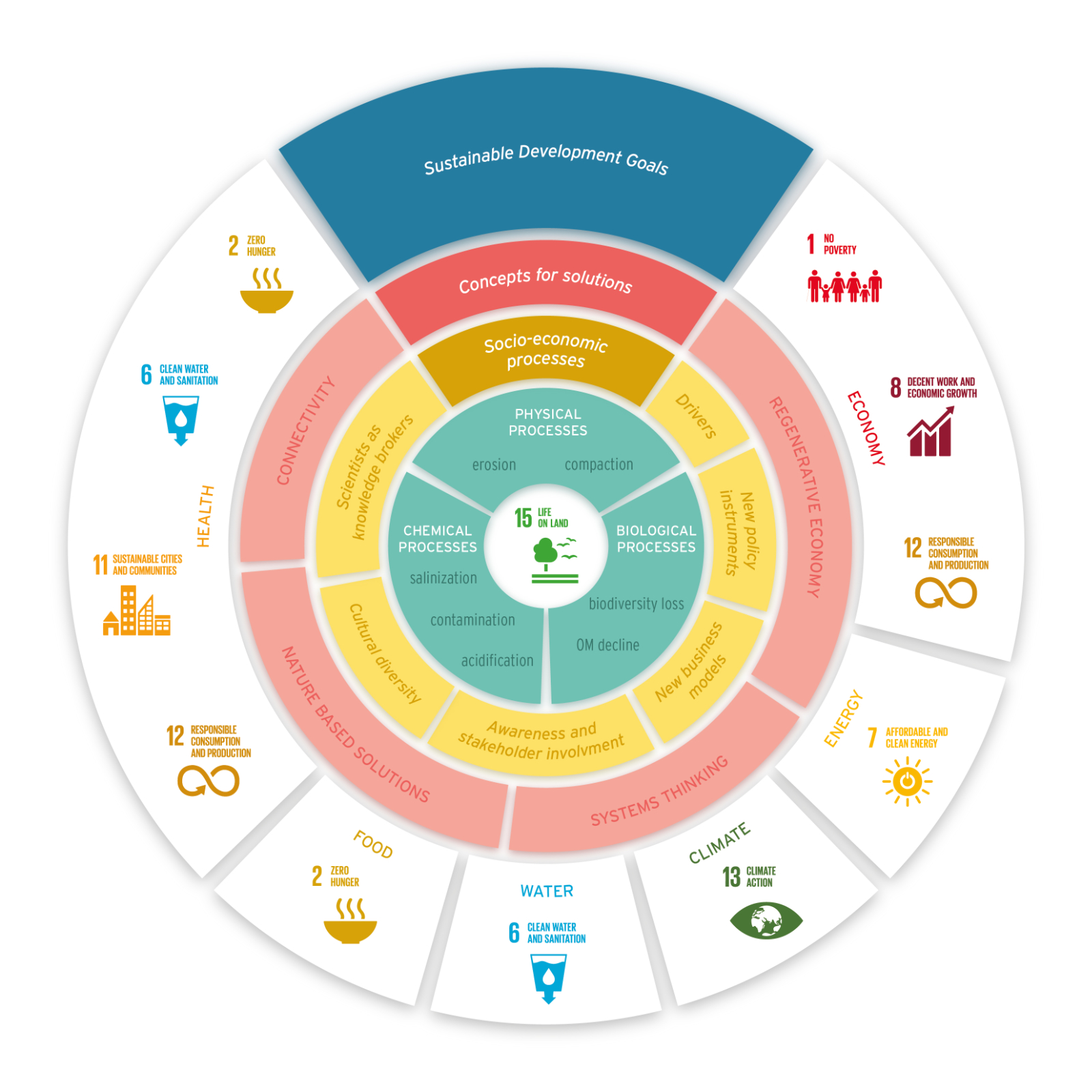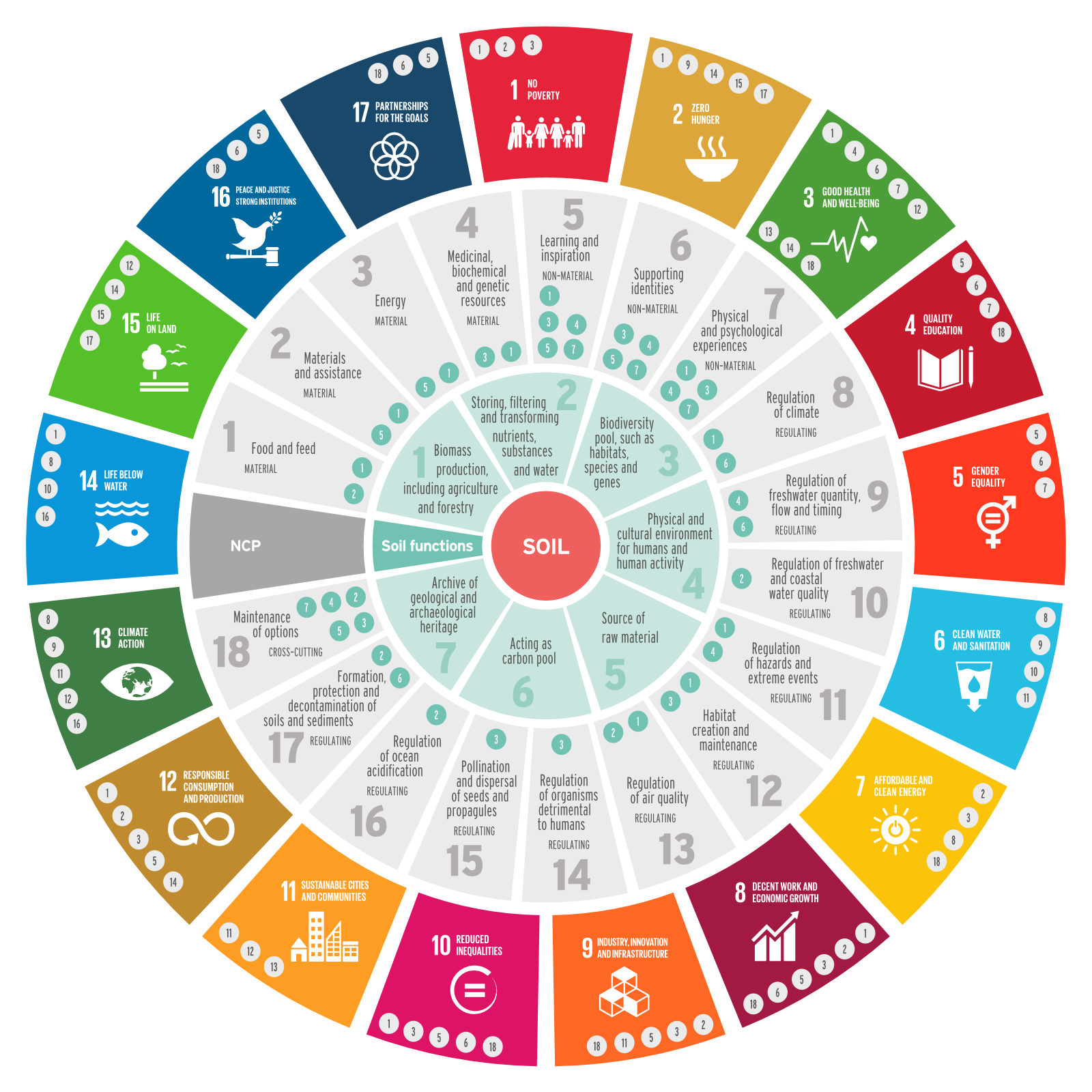 Een graphical abstract en diverse infographics over de rol die de bodem speelt aangaande NCPs en de duurzame ontwikkelingsdoelen van de VN. Deze figuren worden onder andere gebruikt binnen de Europese Commissie.