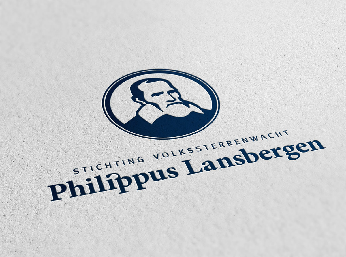 Het logo is gebaseerd op een gravure van de beeltenis van Lansbergen uit de 17e eeuw. Het is gestileerd en vereenvoudigd, zodat het een effectief logo wordt, dat eigentijds en klassiek oogt. Om dat effect te versterken, is de typografie in zowel schreefletters als schreefloze letters gezet. De diepblauwe kleur van het logo is een verwijzing naar de donkere nachten die de sterrenwachters graag hebben.