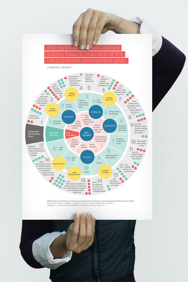 De inhoud van het white paper 'The significance of soils and soil science towards realization of the UN sustainable development goals (SDGs)' in de vorm van een infographic.