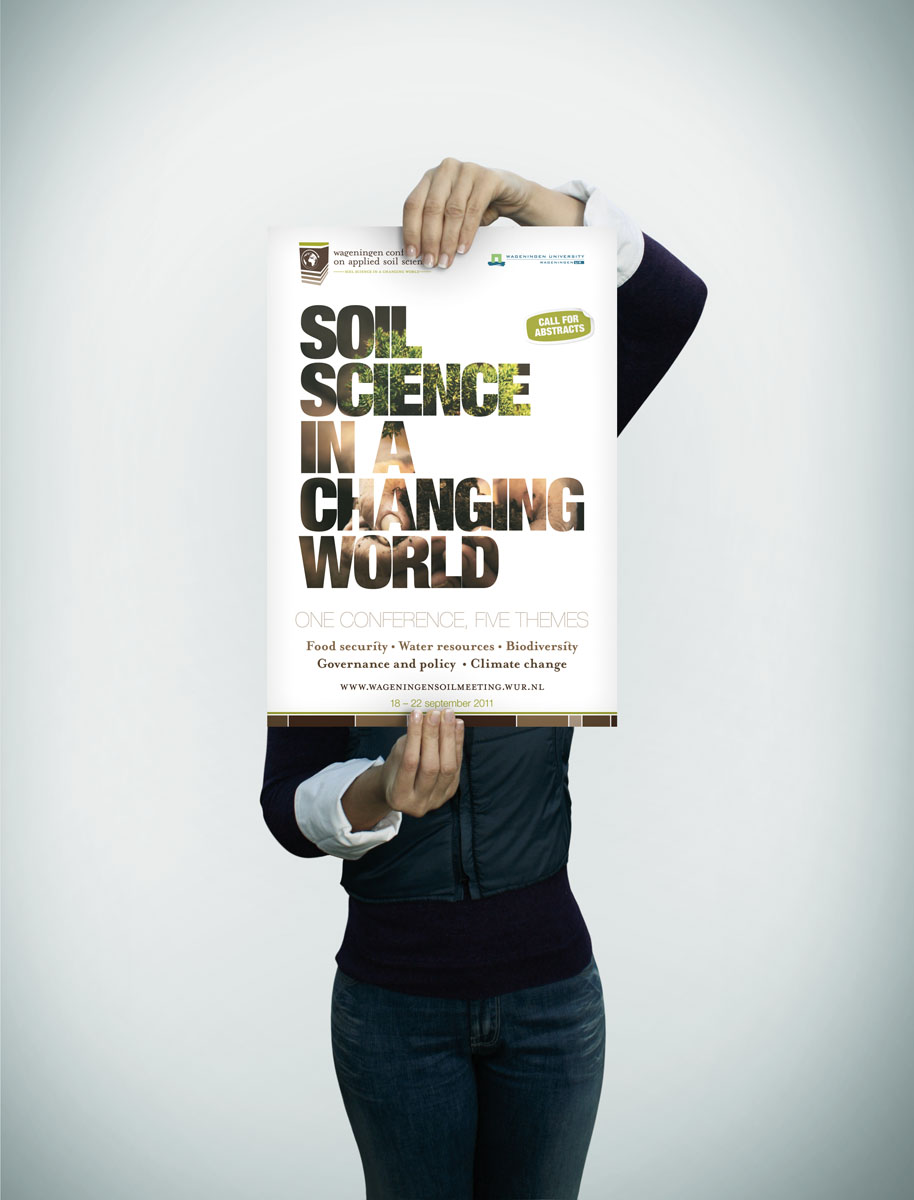 Voor deze driejaarlijks terugkerende bodemkundige conferentie, die in 2011 voor de eerste keer in Wageningen gehouden werd, heb ik de visuele identiteit ontworpen. Het congres draait om het belang van bodemkundige kennis bij het aanpakken van mondiale problemen, zoals bijvoorbeeld klimaatverandering. Hiernaast de poster ter aankondiging van en uitnodiging voor deelname aan de conferentie.